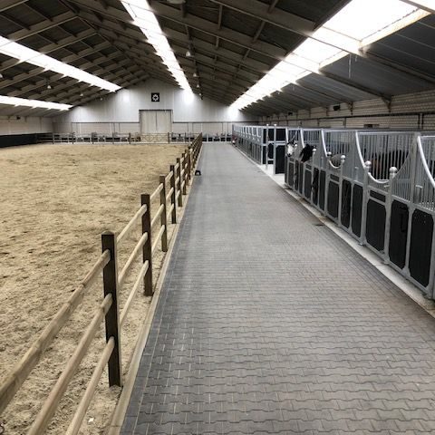 De paarden en overige dieren staan voornamelijk op houtkrullen. Afhankelijk van de behoefte staan er ook een paar dieren en of paarden op stro of vlas.